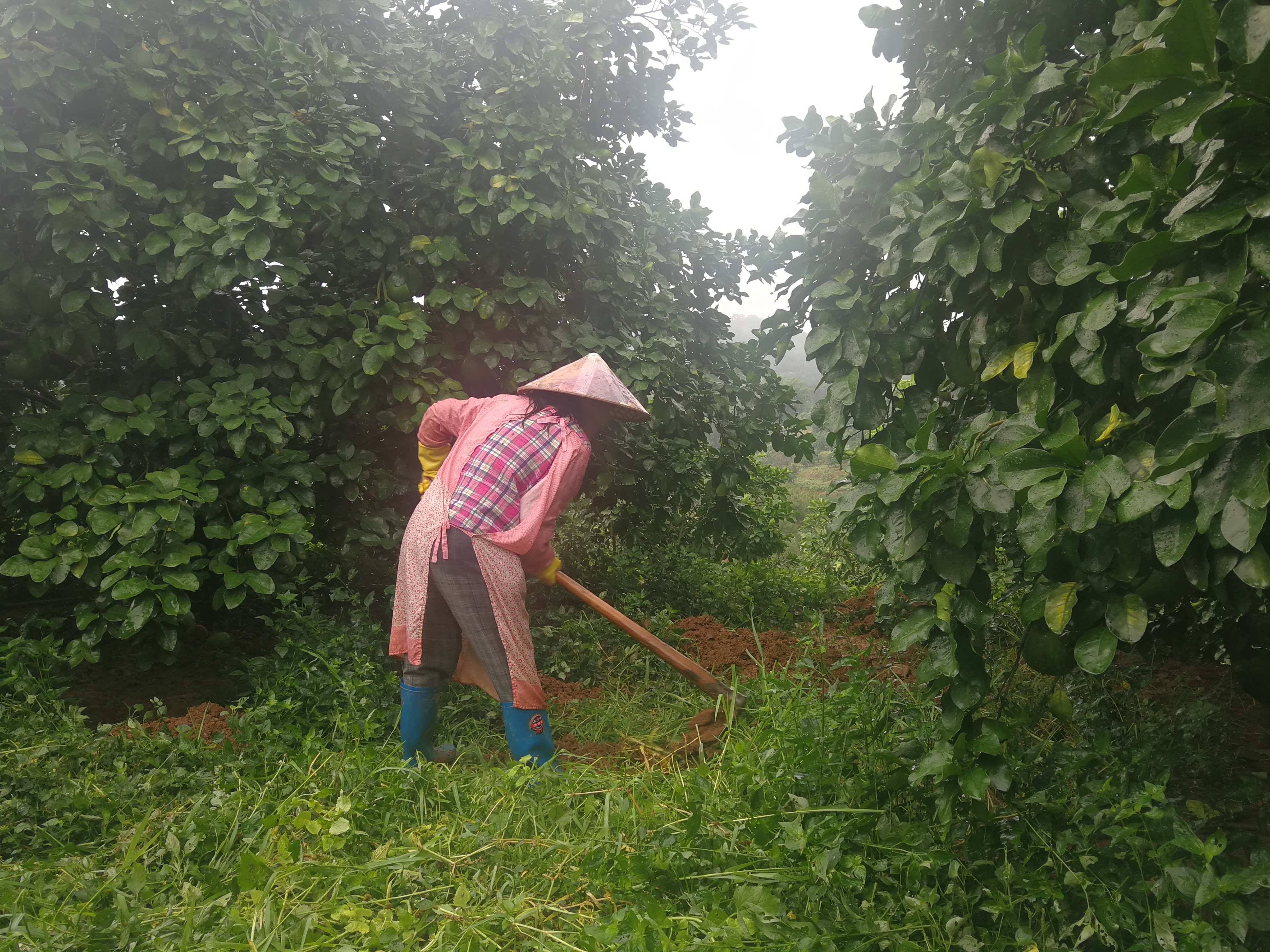 随着炎热的夏天到来,金柚进入夏梢生长、果实膨大的主要时期。在梅县区松源镇的一家柚园,大大小小的翠绿色柚果缀满了枝头,柚农正忙着在柚树下进行挖沟埋肥工作。