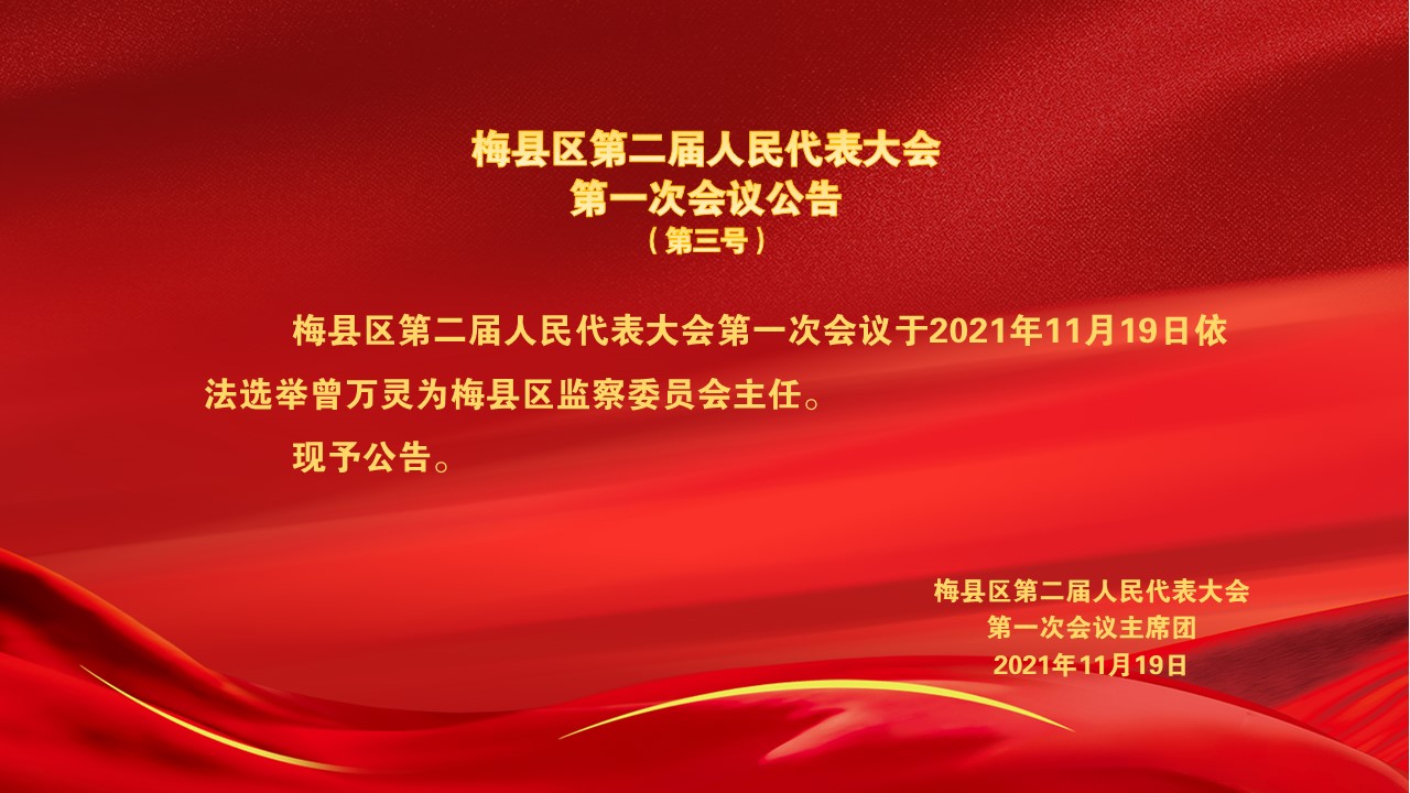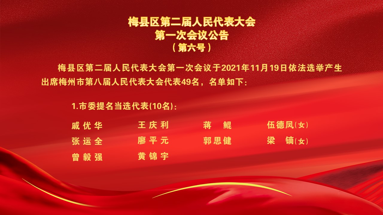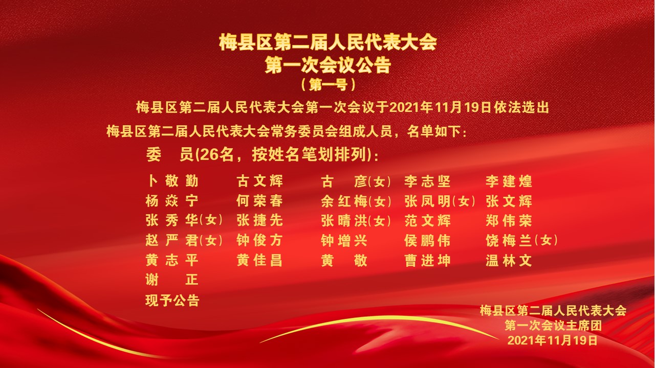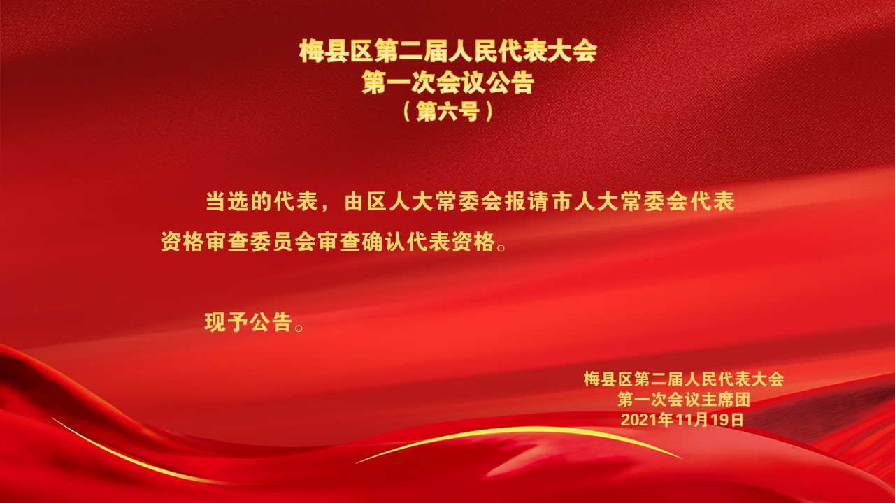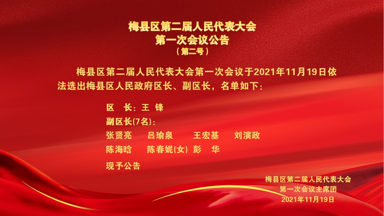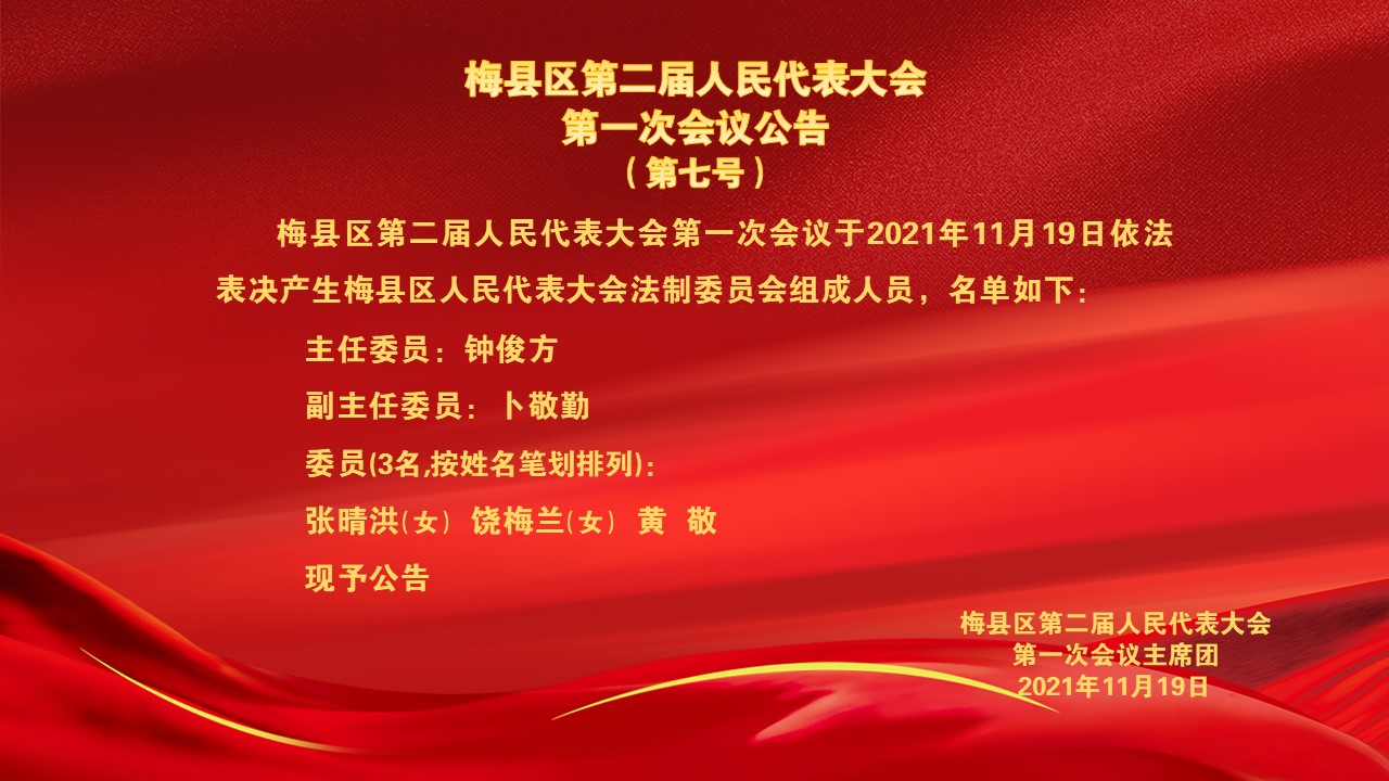 梅县区第二届人民代表大会第一次会议发布第一号至第七号公告