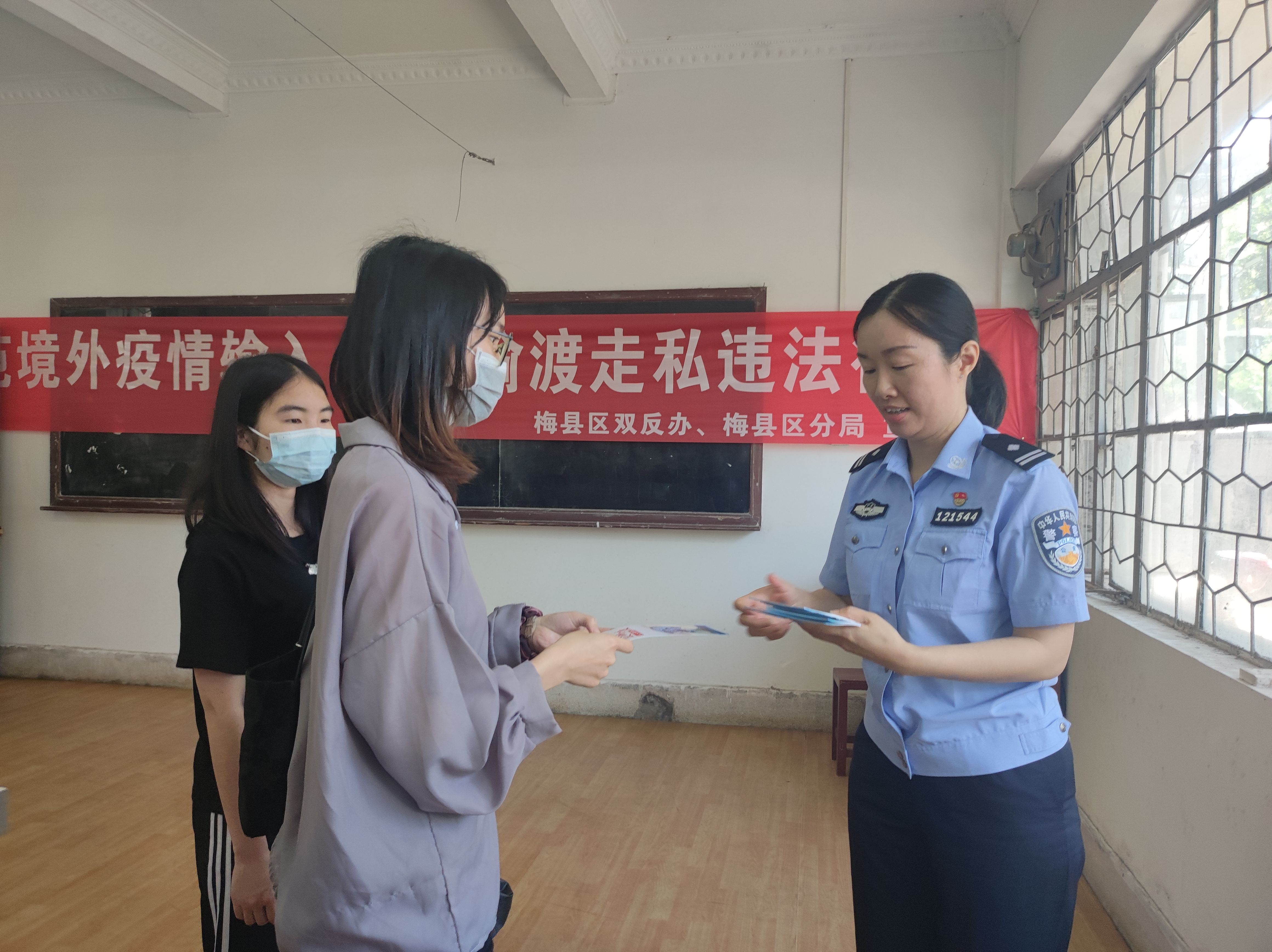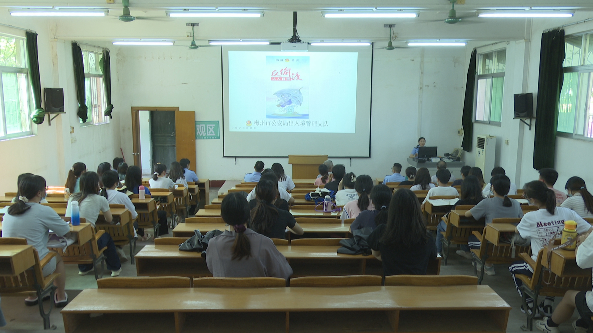 为进一步加大反偷渡、反走私宣传力度,提高青少年法治意识,今天下午三点,梅县区公安分局的民警走进嘉应学院梅州师范分院,举行以“防范境外疫情输入、严打偷渡走私违法行为”为主题的反偷渡、反走私知识宣传活动。