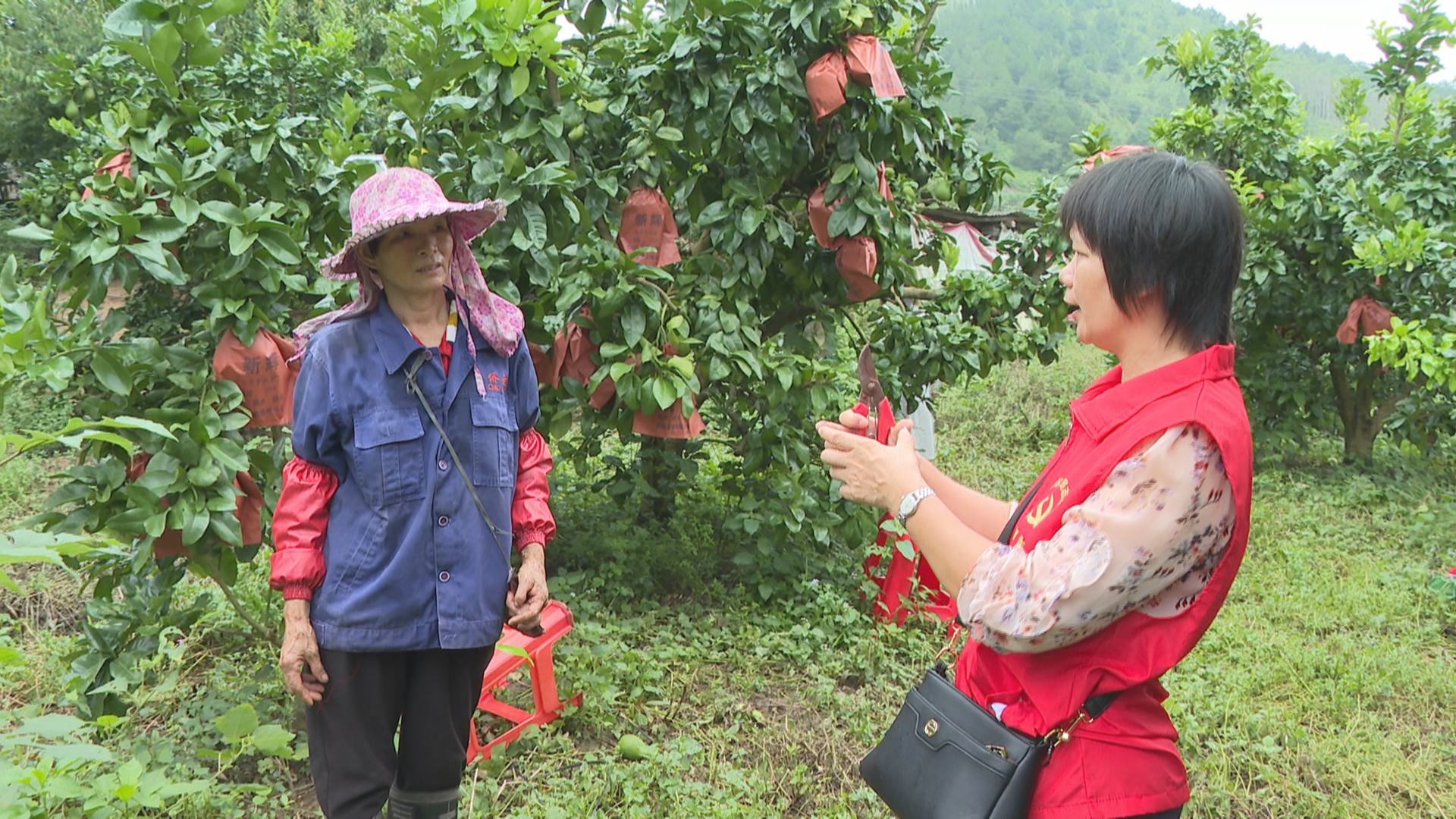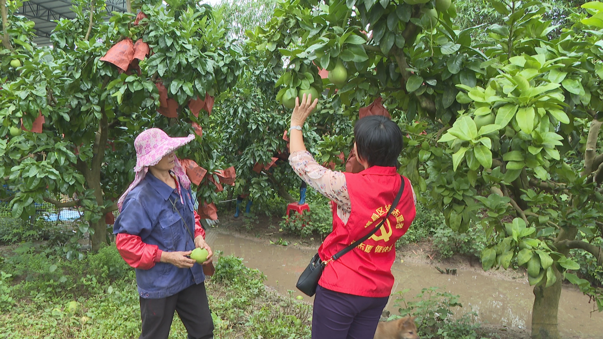 在丙村镇黄梅村一柚园,记者看到农技人员一边安抚受灾群众情绪,鼓励农户提振信心,积极开展生产自救,一边针对受灾情况分类进行清园修剪、套袋、病虫害防治等技术指导,帮助群众减轻受灾损失。“我们现在一停雨就马上给柚果装套袋,农技人员教我们如何选果、疏果,对我们农户给予了非常大的帮助。”柚园主钟姐告诉记者。