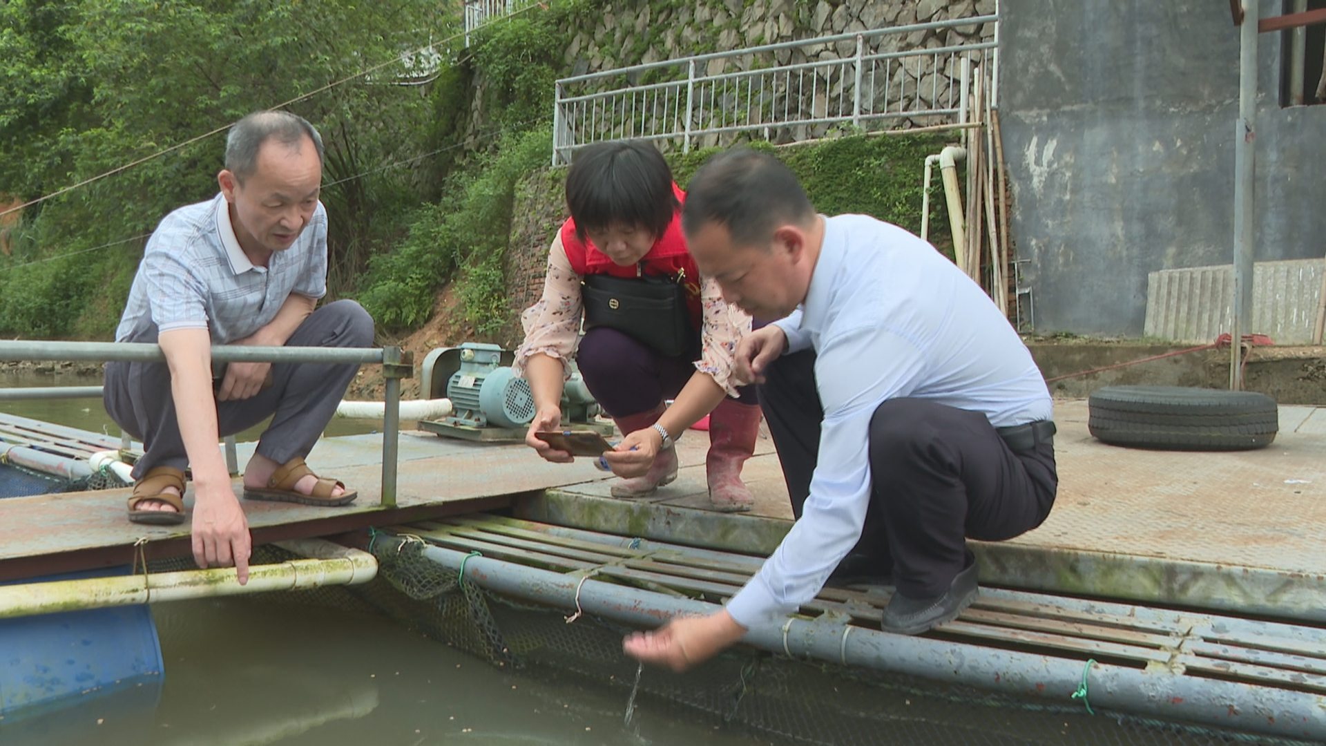在雁洋镇雁下村一水产养殖基地,记者看到水产技术人员正在帮助养殖户检查养殖水体情况,并现场指导他们如何进行水体消毒。记者了解到,该水产养殖基地受灾面积250多亩,损失严重。