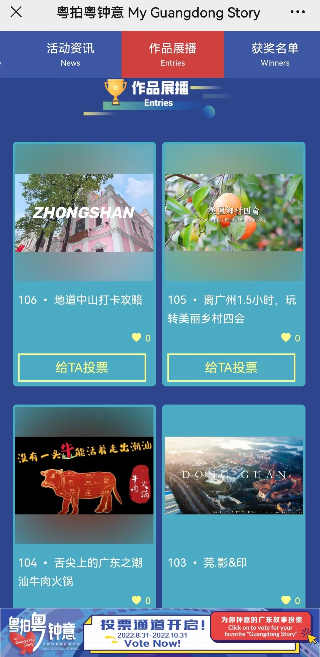 “粤拍粤钟意”全球短视频征集活动投票通道开启啦!只要动动手指,你就能助力自己的心选故事“突围而出”获得大奖!